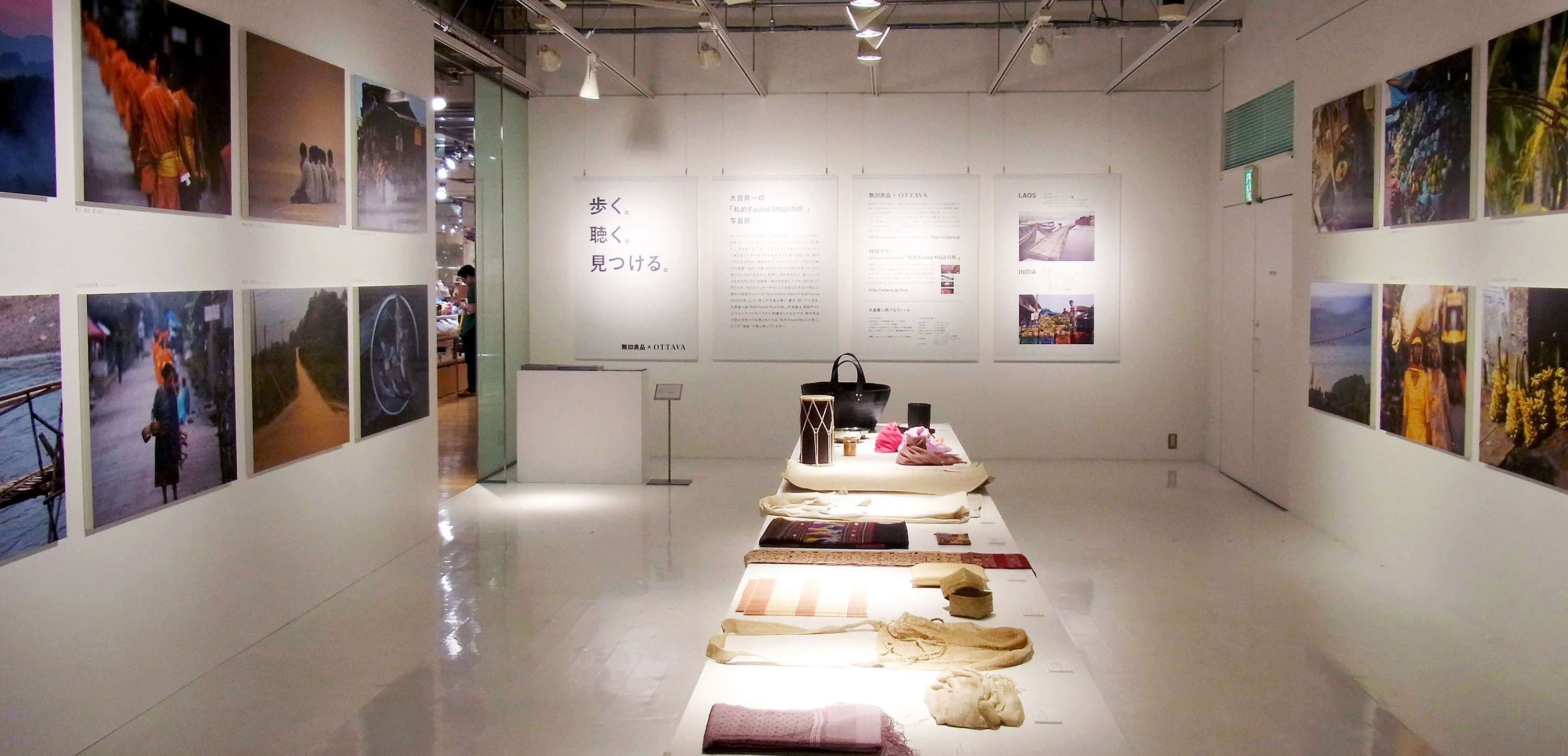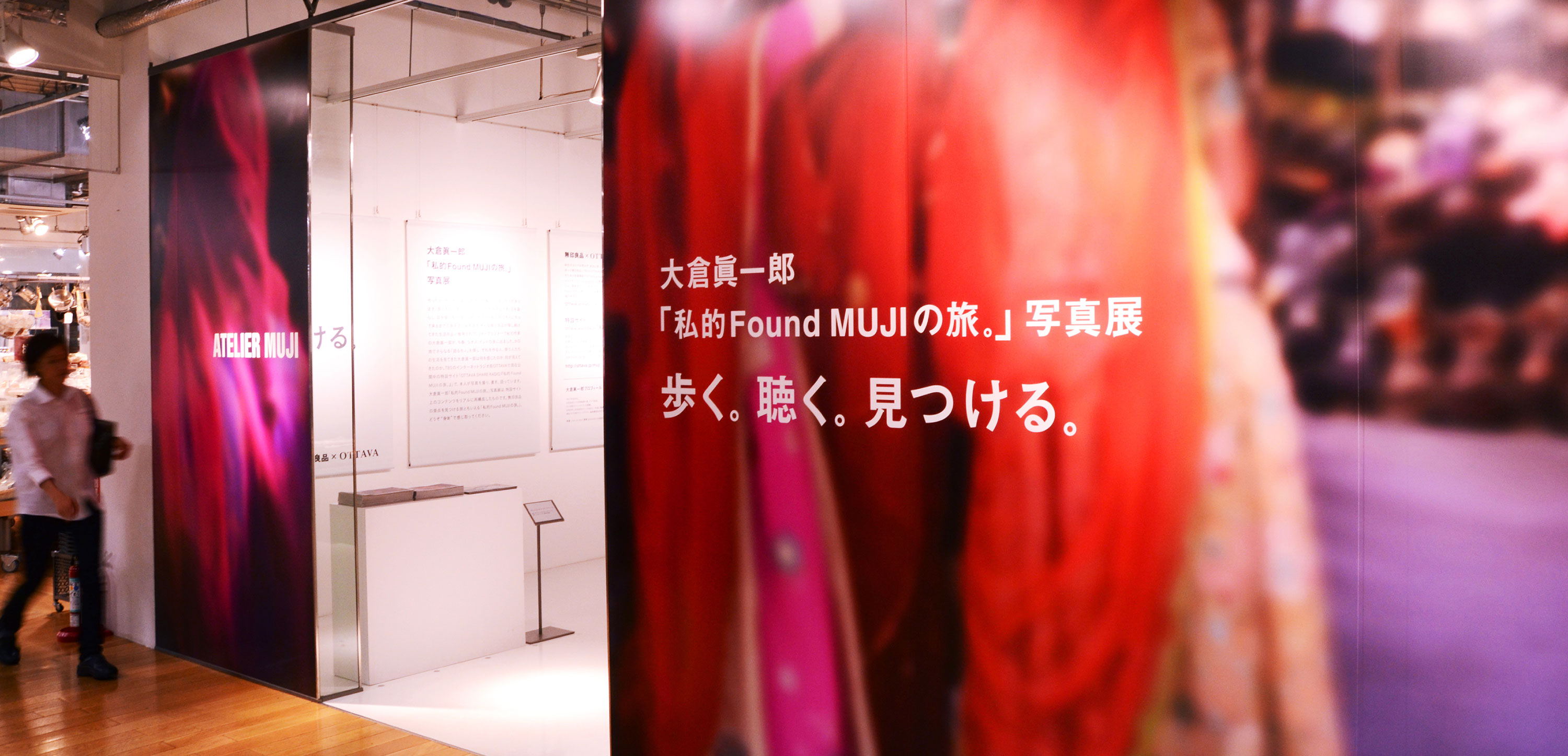 無印良品とクラシック専門ラジオ局OTTAVAの共同企画「私的Found MUJIの旅」のWEBデザインと展覧会の会場構成。大倉眞一郎氏がラオス、インドで歩いて見て聴いてきた音や写真とFound MUJIの視点で集めた現地のモノを紹介する企画。展覧会だけでなくラジオ番組にも連携した、現地の匂いや音がリアルに体験できるコンテンツ。