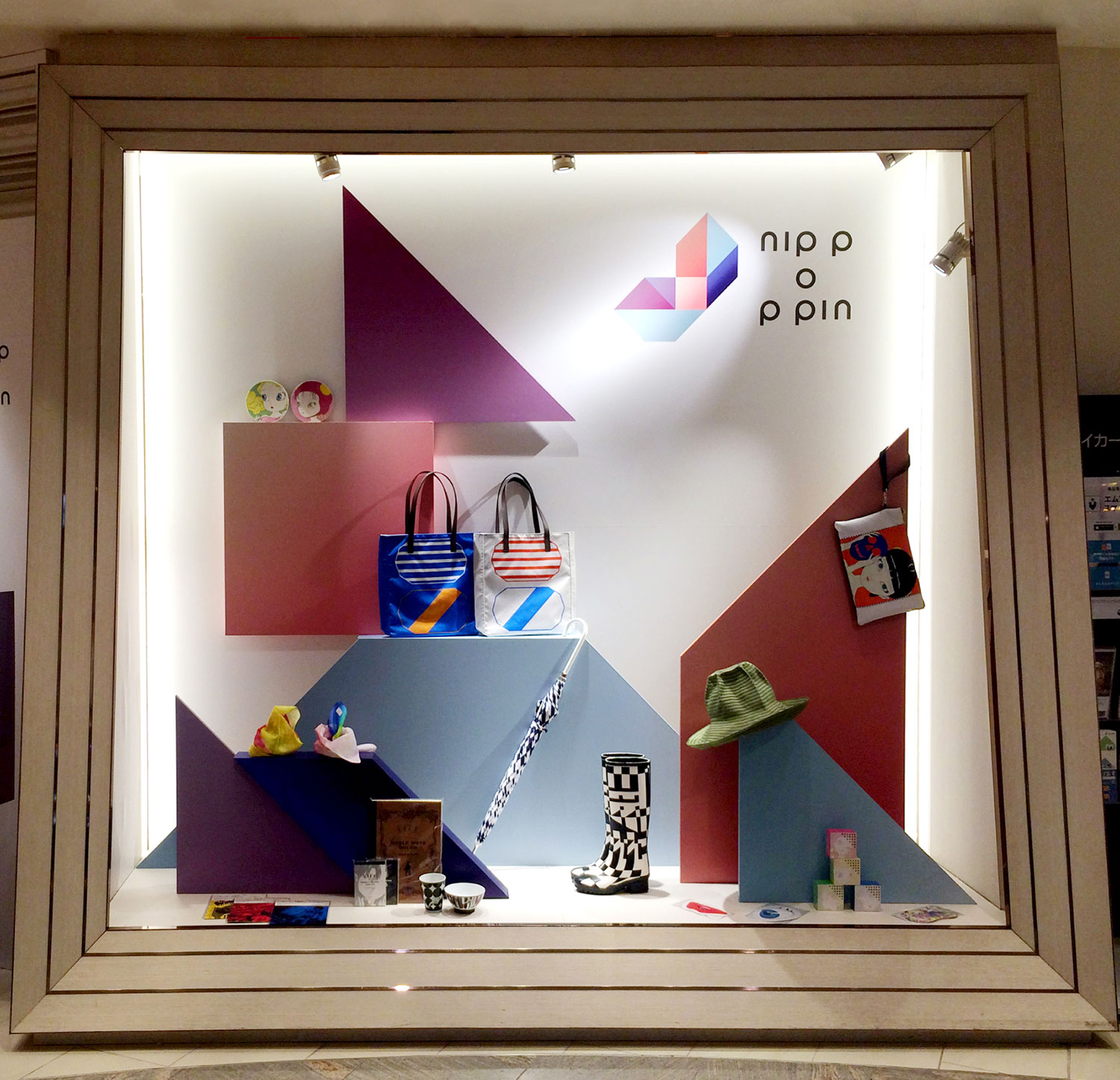 様々なクリエーターとコラボして日本のカルチャーを体現する商品を生み出す三越伊勢丹のプライベートブランド「nippopin」の立ち上げに参加。古代からあるパズルに着想を得たロゴは、日本の伝統色で表現。たくさんの出会いによってブランド自体が変容、多様化していくように、ロゴも動的に設計。形式に捉われないブランドのあり方を試みた。